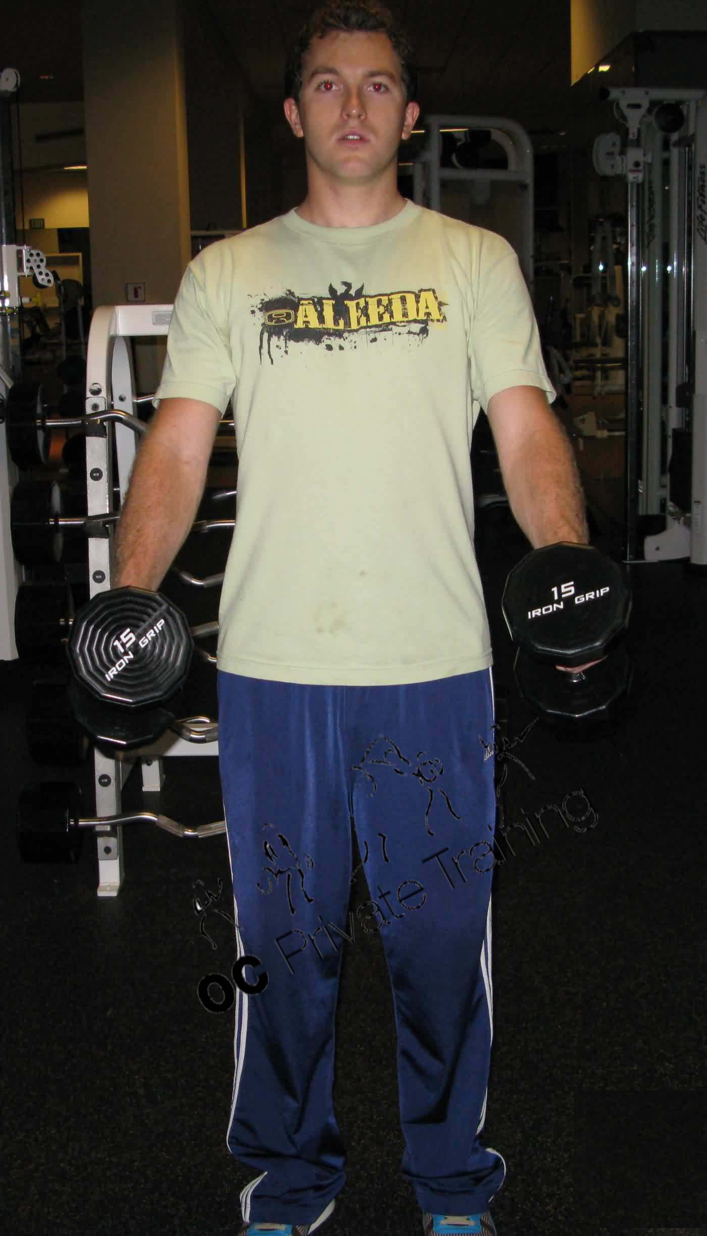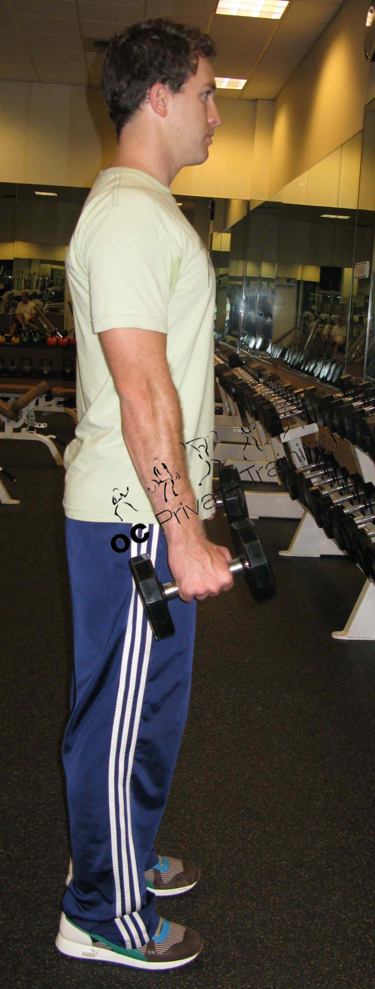 Shoulder blades are tightened back to keep postural foundations. Keep arms straight at the side of the body.