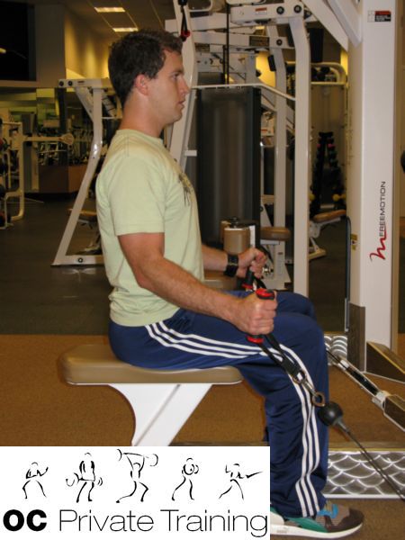 Allow your forearms to lift upwards towards your shoulders. Keep the cable handle and your hands about shoulder width.